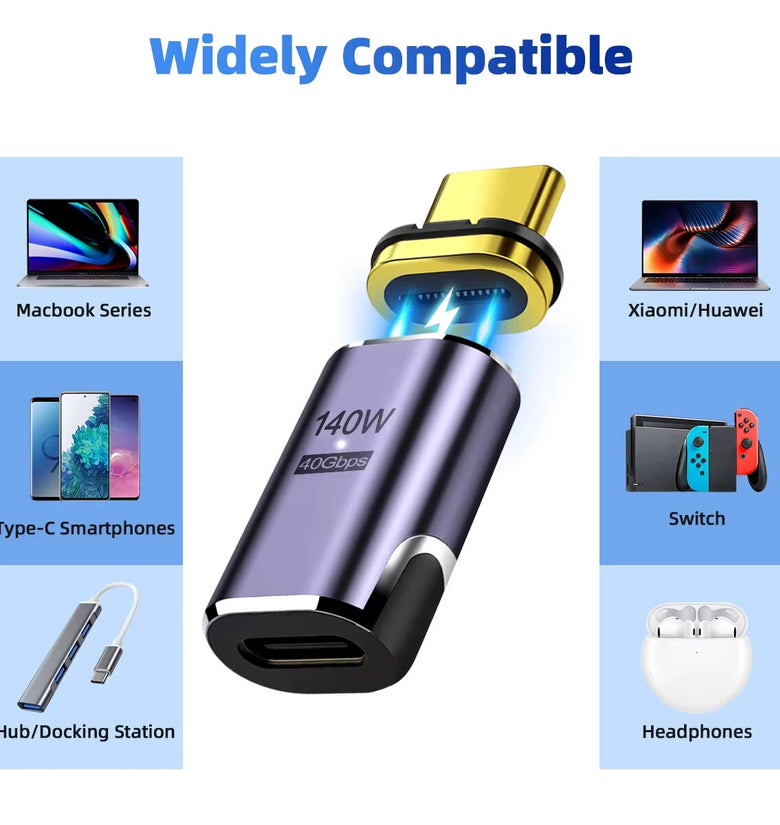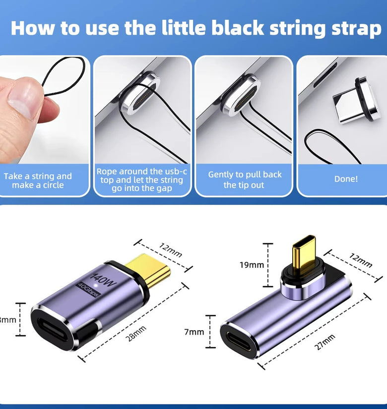 • 140W USB4.0 40Gbps Thunderbolt3 Magnetic Type-C to Type-C Fast Chargeing Magnet Converter Cable 8K@60Hz OTG USB Type C Adapter