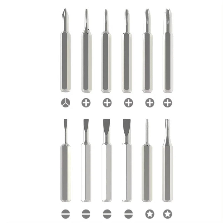 1. Comprehensive Set: Includes 24 precision screwdriver bits catering to a variety of repair needs for mobile phones, PCs, cameras, drones, and more.