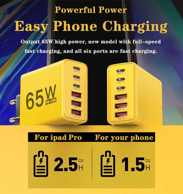 1. High Power Output: Provides up to 65W of power for fast and efficient charging.