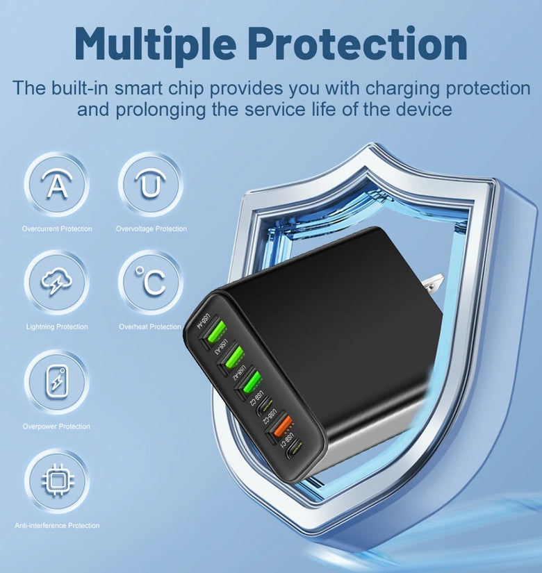 2. High Power Output: With a total power output of 65W, this charger can support fast charging of multiple devices simultaneously.