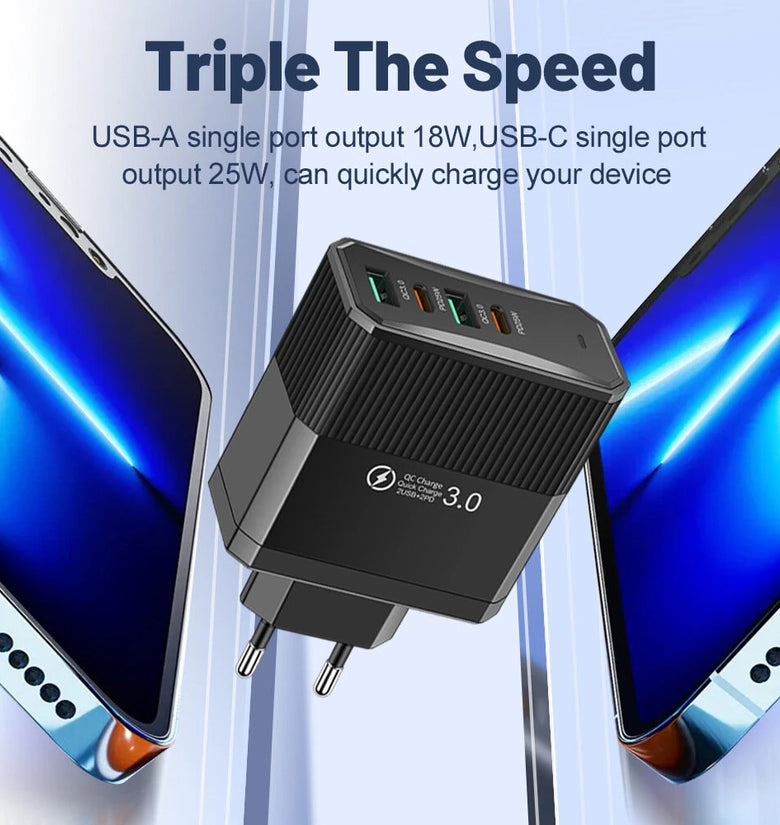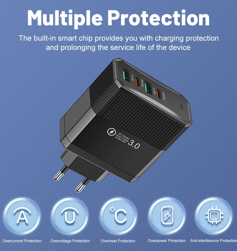 1. Dual USB-A and dual USB-C ports for charging multiple devices simultaneously