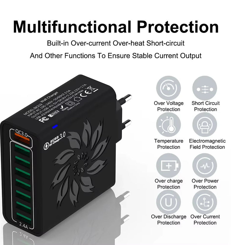 USB-A2/A3/A4/A5/A6/A7/A8 output: 5V/2.4A