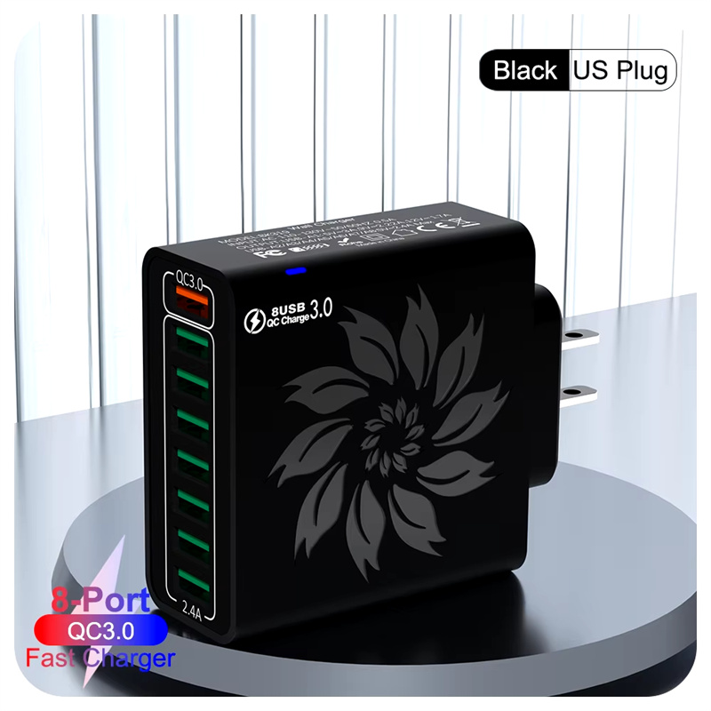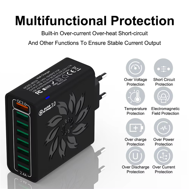 • BK319 120W 8-Port USB Charger QC4.0/3.0/2.0 FCP SCP Fast Charging Wall Charger Adapter EU Plug US Plug for iPhone 16 15 14 13 Pro for Huawei Mate XT for Samsung Galaxy Z Fold6 for Xiaomi MIX Fold4