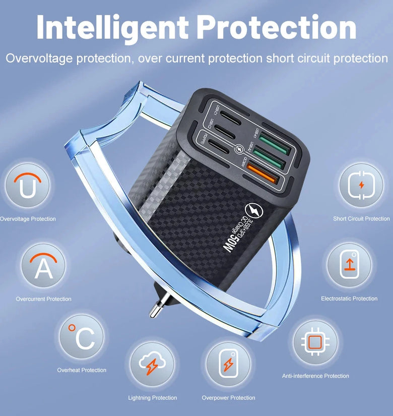 | Output | QC36W:5V-3A;9V-3A;12V-3A; PD(PPS):5V-3A;9V-3A; USB-A1/A2/C1/C2:5V-3.1(Max) |