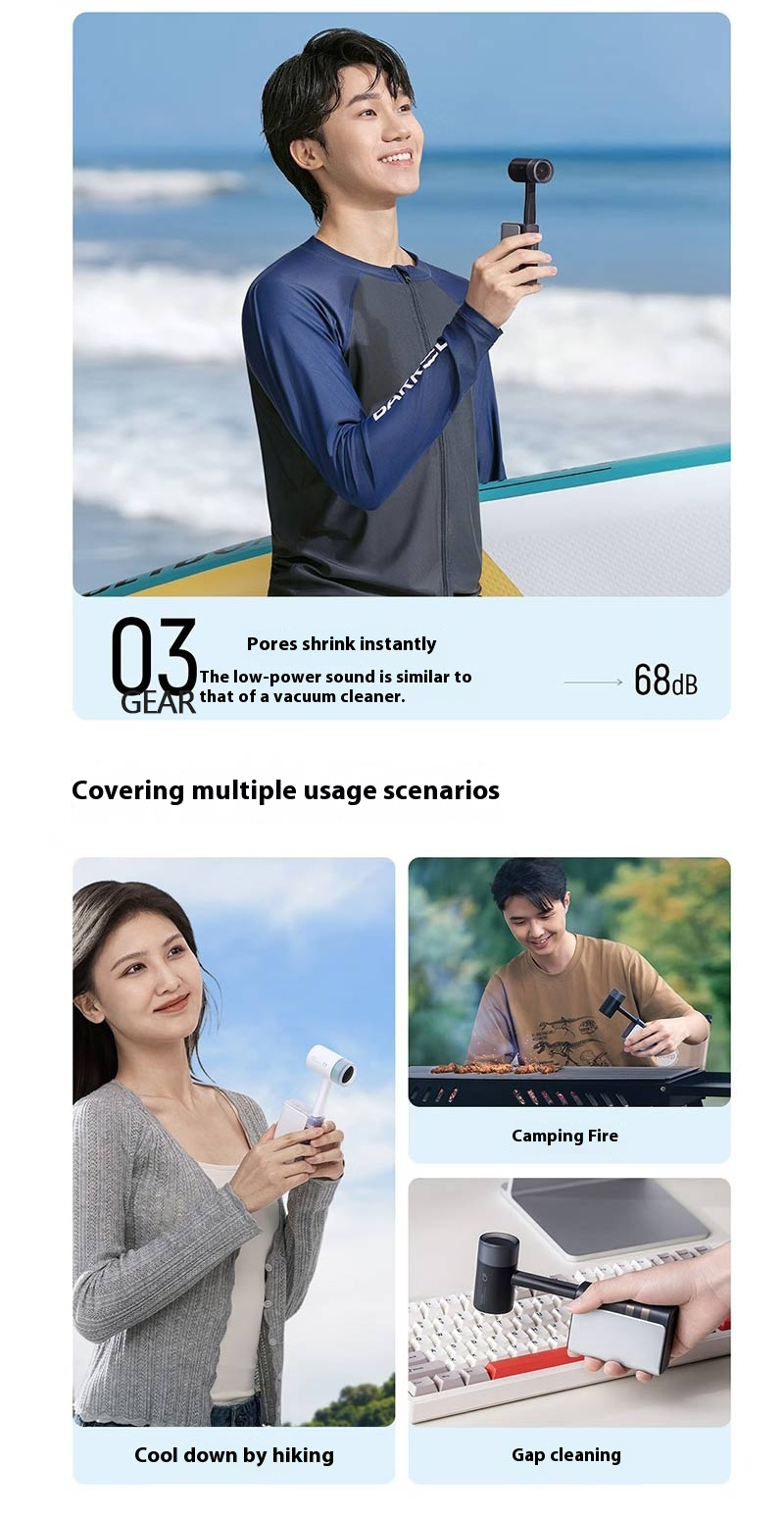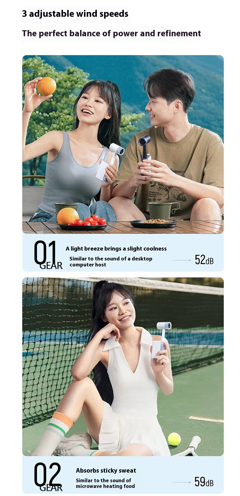 3. Three Adjustable Wind Levels: Offers customizable cooling for various outdoor scenarios with noise levels ranging from 52 dB to 68 dB.