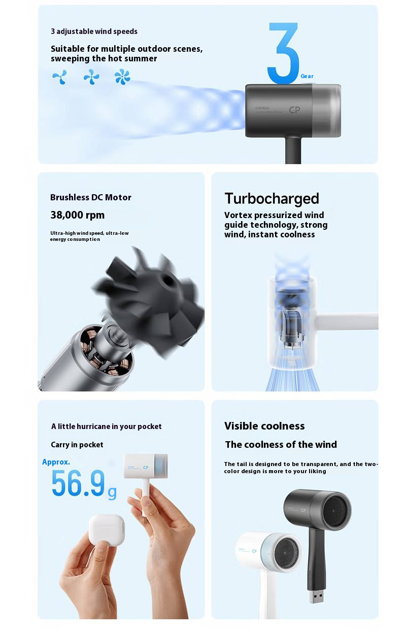 1. Advanced Turbocharged Airflow Technology: Enhanced air intake design for efficient wind output, reaching speeds up to 10.5 m/s.