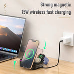 4. Magnetic and Adjustable Stand: Strong magnetic coil ensures secure phone positioning, allowing horizontal and vertical charging with folded angle adjustments.