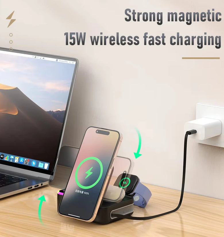 Wireless Output: 15W/10W/7.5W (Phone), 5W (Airpods), 2.5W (Watch)