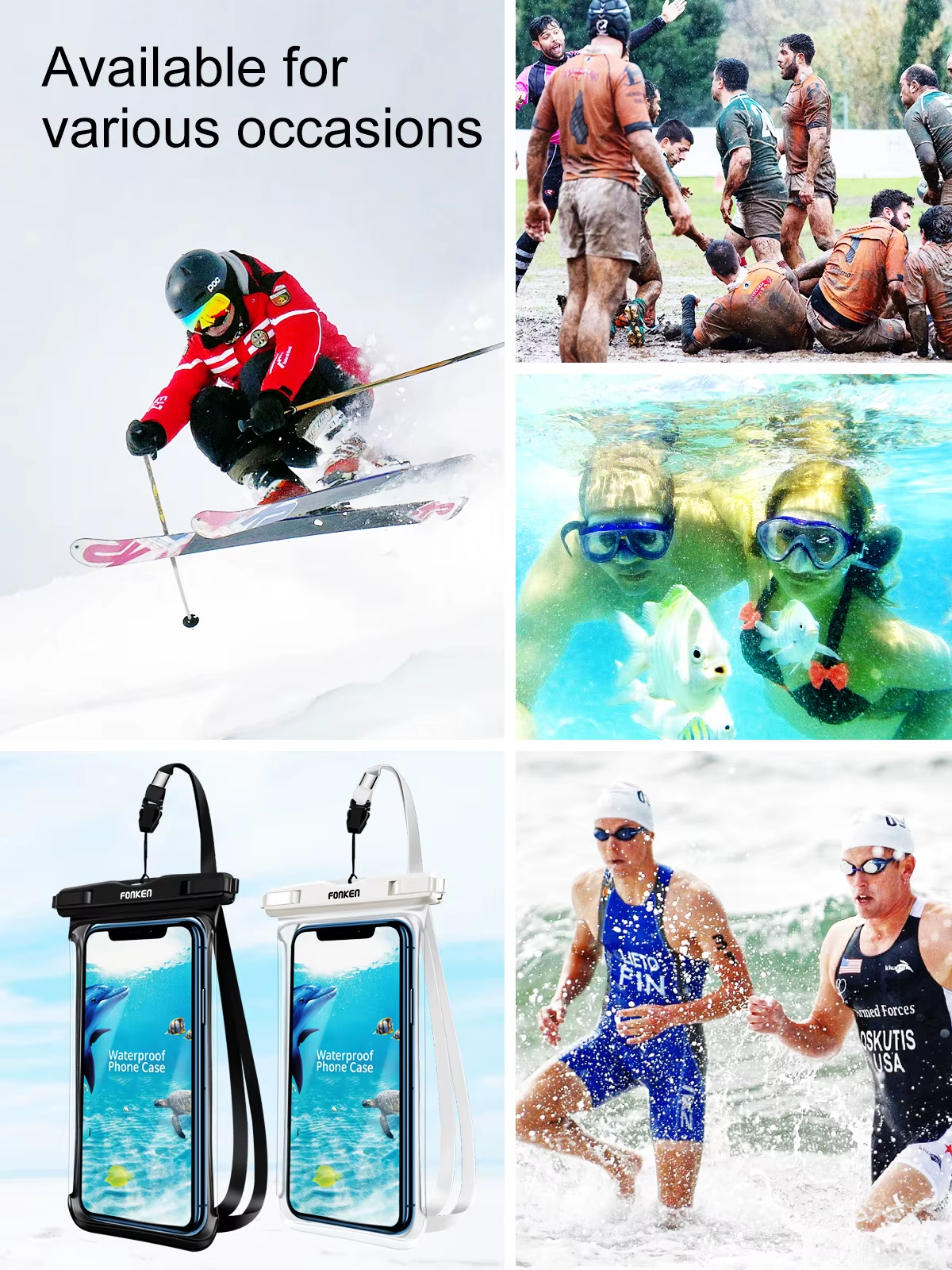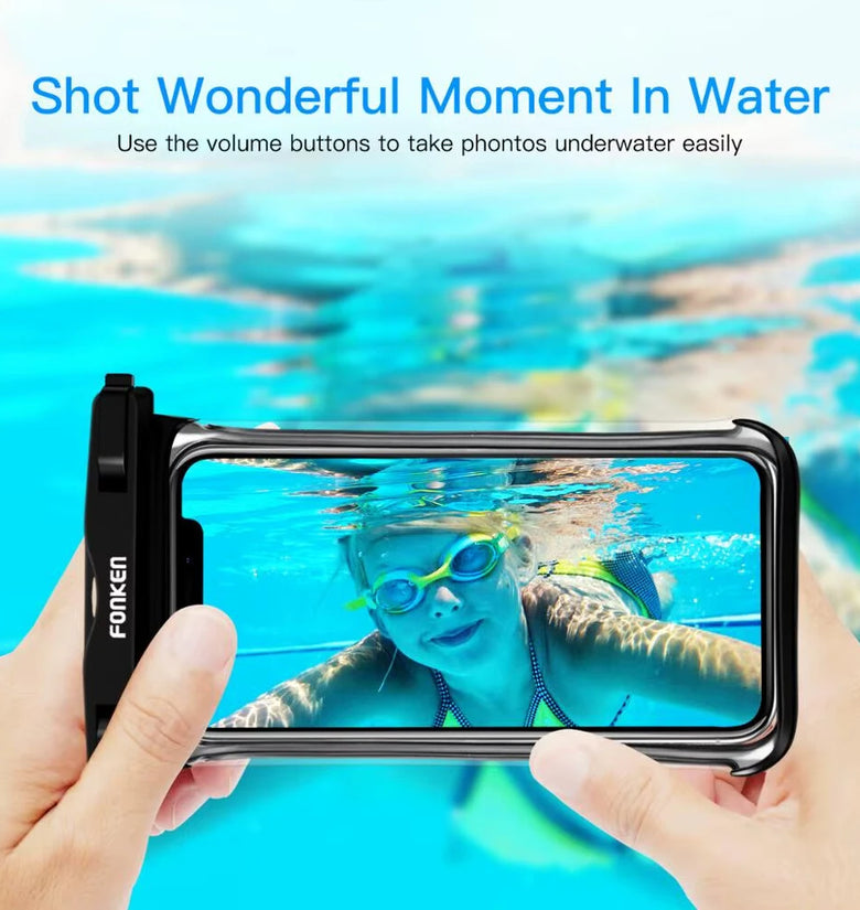 • Fonken IPX8 Waterproof Phone Case with Lanyard Full Touch Screen Clear Dry Bag for Up to 6.5 Inch Phones Swimming Beach Snorkeling Underwater Photography Protection