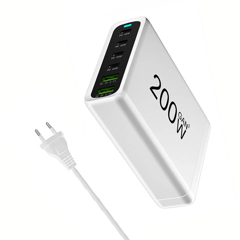 1. Diverse Charging Options: The 6-Port USB PD Charger is equipped with 2 USB-A and 4 USB-C ports for simultaneous charging of multiple devices.