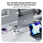 1. High-Power Charging: Delivers a total output of 140W, supporting power delivery up to 100W through PD1 and multiple 30W outputs through other ports.