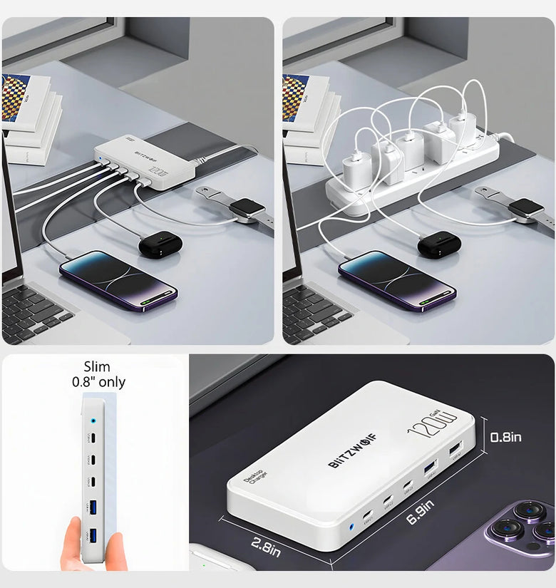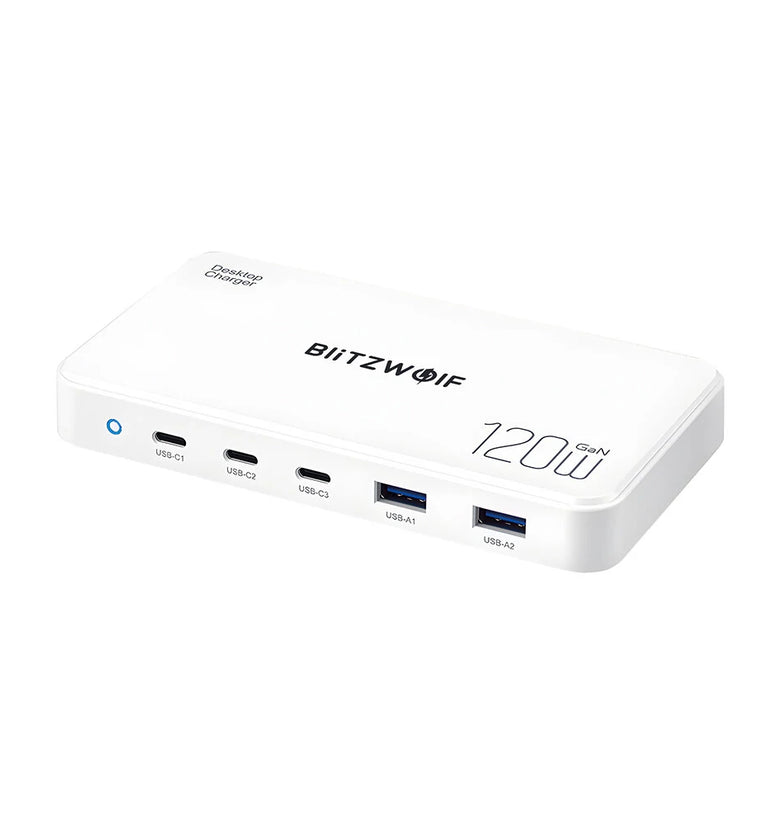 1. Multiple USB ports: The Blitzwolf BW-i100 comes with 2 USB-A ports and 3 USB-C ports, allowing you to charge multiple devices simultaneously.