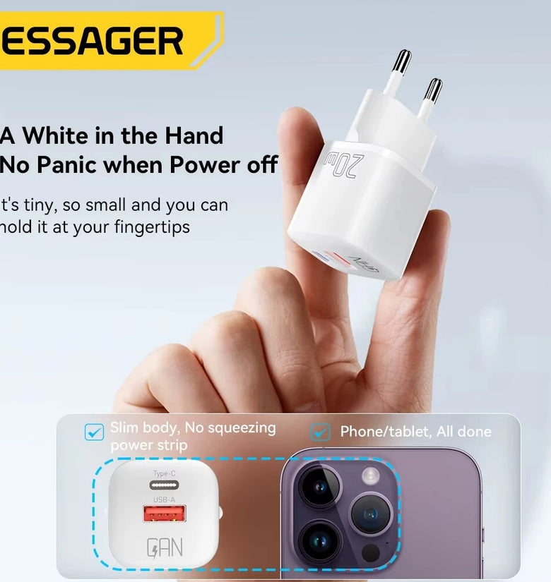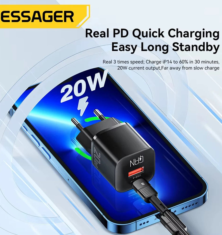 1 x ESSAGER ES-CD31 20W 2-Port USB PD Charger