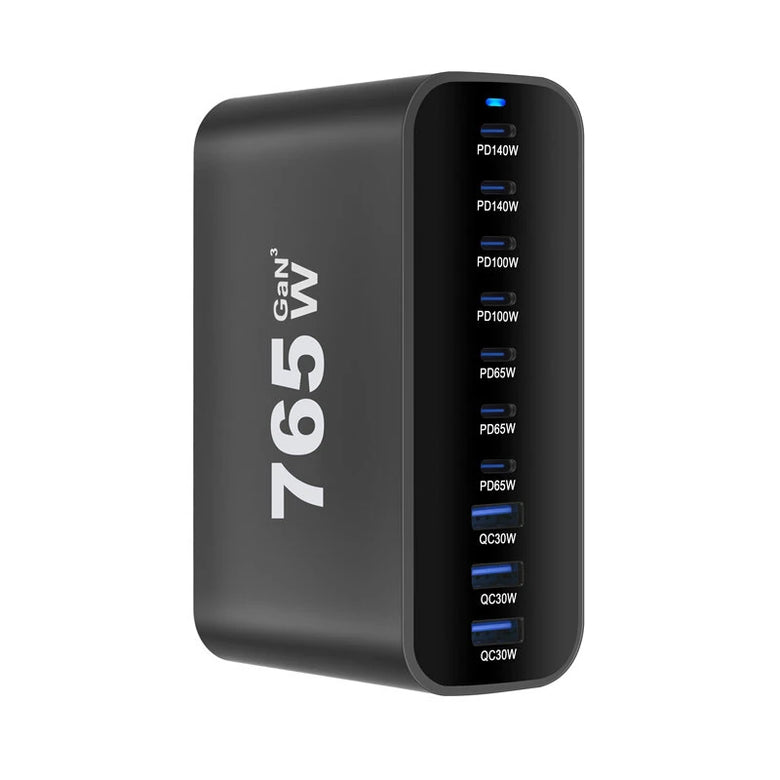 1. High Power Output: Delivers a robust power output of up to 765W, ensuring compatibility with multiple devices simultaneously.
