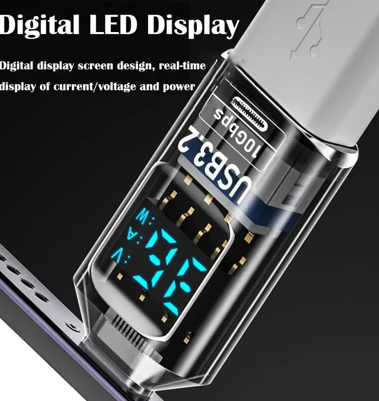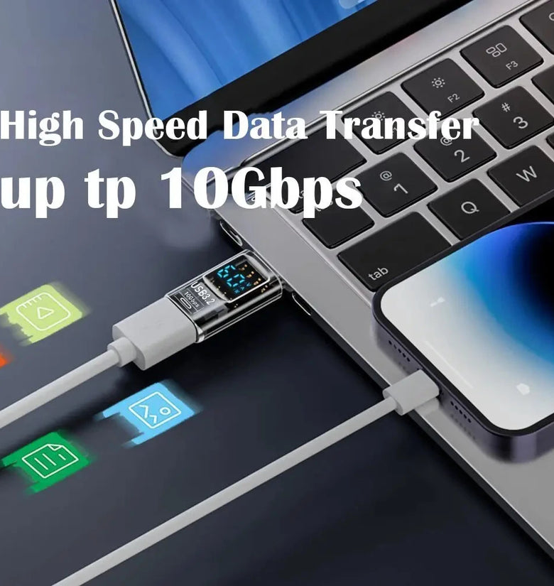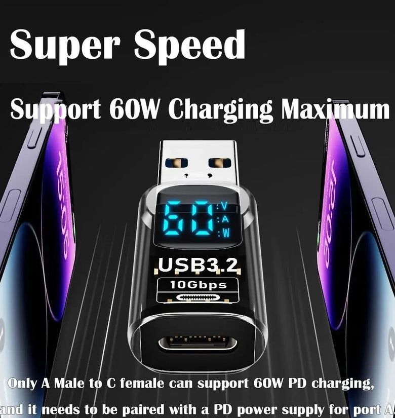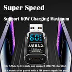 • LED Digital Display USB 3.2 Adapter 10Gbps 36-60W Power Meter Tester Smart Chip Data Transmission USB-C Extension Adapter Converter