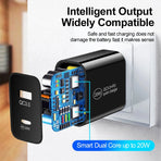 PD20W 2-Port USB PD Charger Dual 20W USB-C PD3.0 QC3.0 Fast Charging Wall Charger Adapter EU Plug for iPhone 12 13 14 14 Pro Max for Huawei Mate50 for Redmi K60 for Samsung Galaxy S22