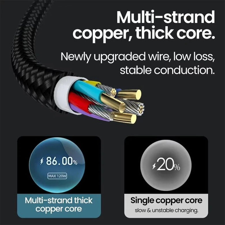 4.【Fast Charging and Data Transfer】: With a charging capacity of 120W, this data cable can charge quickly and efficiently. In addition, it is perfect for high-resolution media and large file transfers.