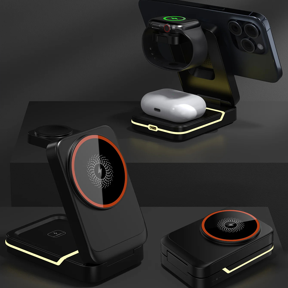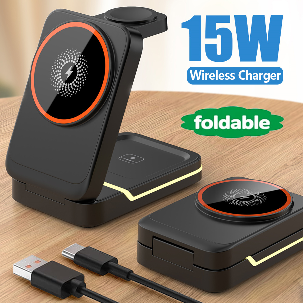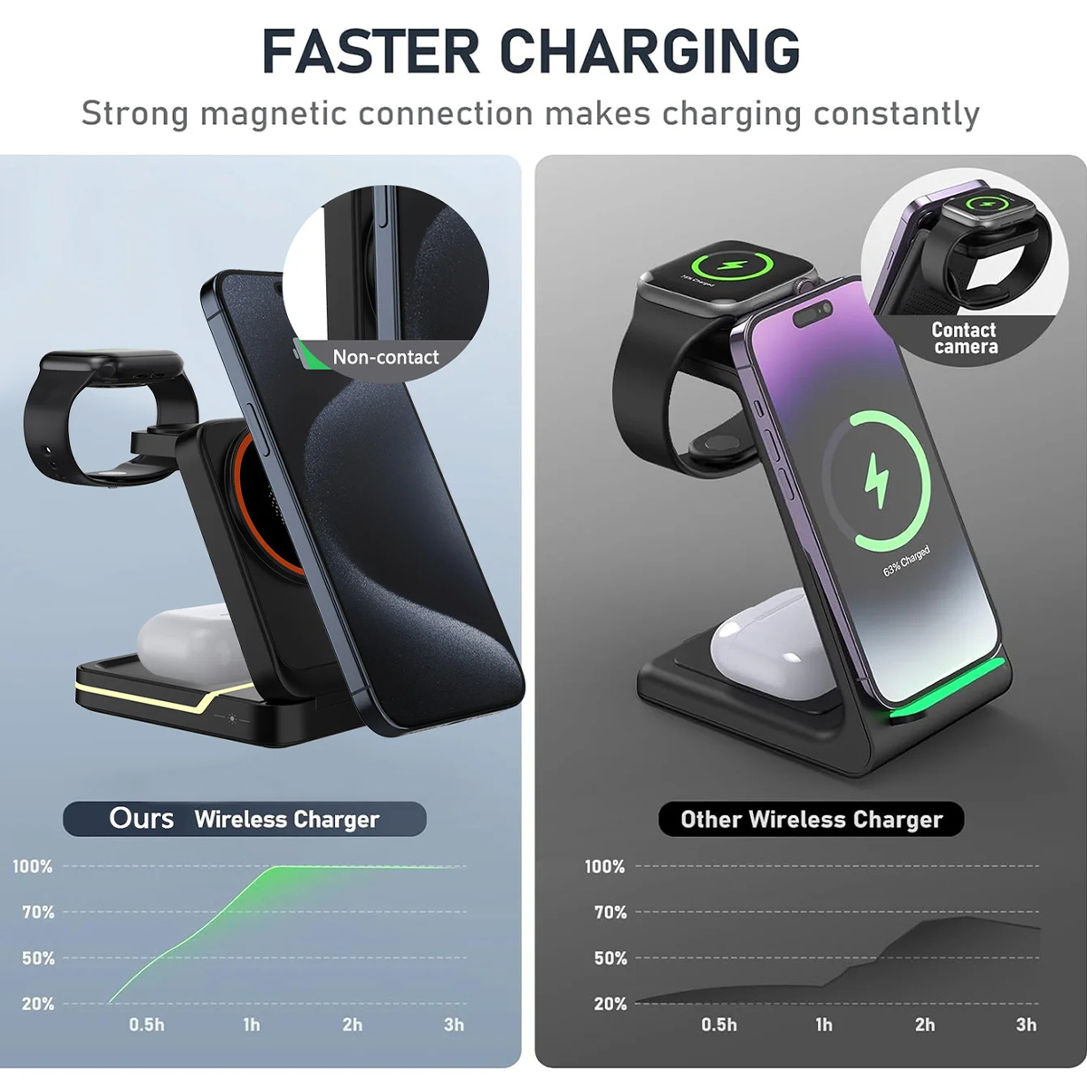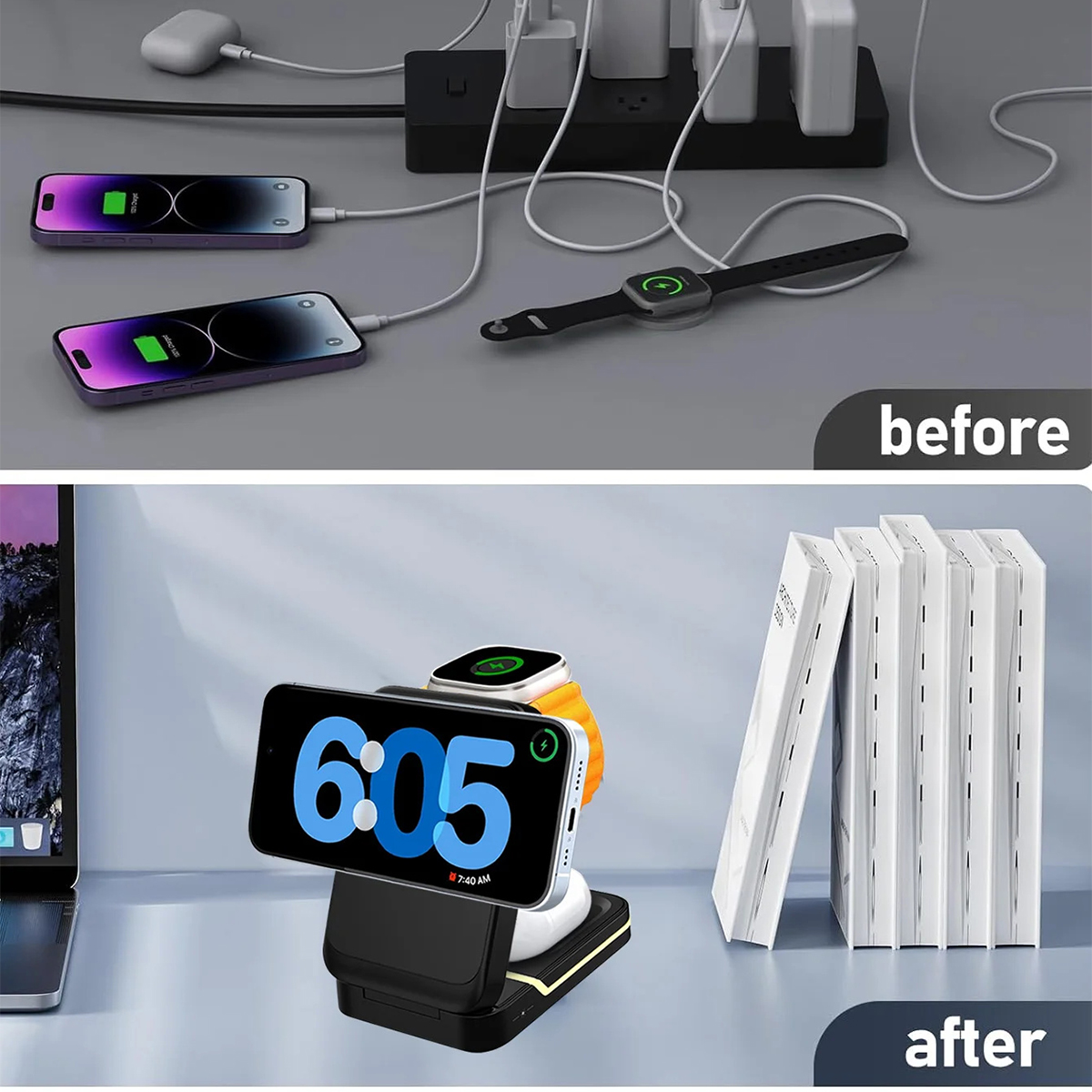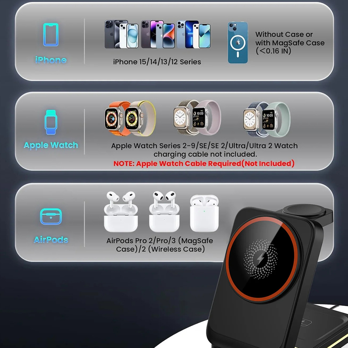 1. 3-in-1 Charging Solution: Simultaneously charge your smartphone, Apple Watch, and AirPods with one convenient station.Package Include: