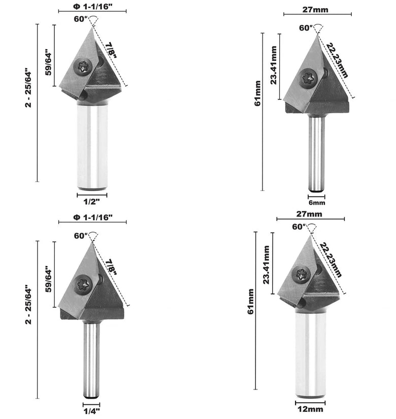 Optional Shank Size: 1/2' / 1/4' / 6mm / 12mm