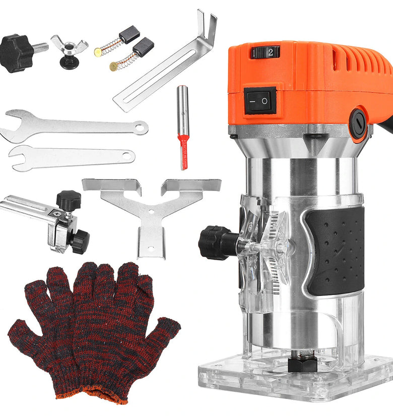 220V 35000rpm 6 Speeds Wood Electric Hand Trimmer Woodworking Slotting Trimming Tool Hand Carving Machine Wood Router Joiner Set