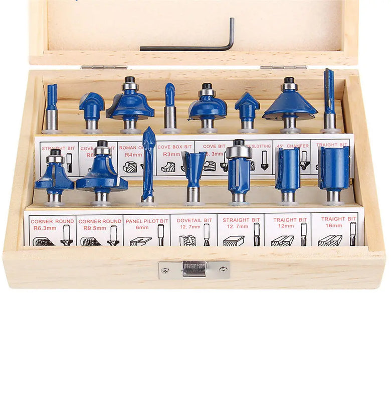Package Included:1 x 15Pcs 1/4" Router Bit Set