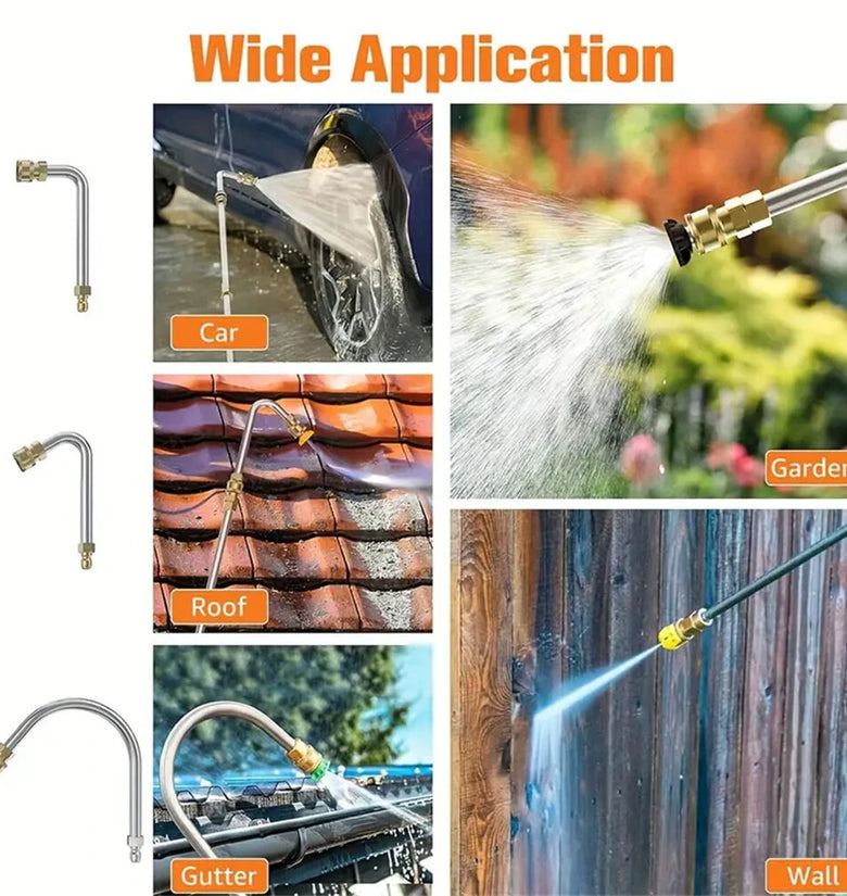 16PCS Stainless Steel High-Pressure Water Gun Set with Extended Rods 4000psi Quick Connect Versatile Cleaning Tool for Courtyard Livestock Rooftop Including Five Spray Nozzles