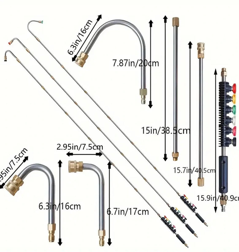 • 16PCS Stainless Steel High-Pressure Water Gun Set with Extended Rods 4000psi Quick Connect Versatile Cleaning Tool for Courtyard Livestock Rooftop Including Five Spray Nozzles