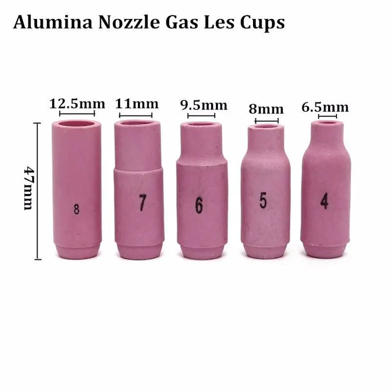 5) 1 pcs #8 10N46 Alumina Nozzle Gas Les Cups for WP-17 WP-18 WP-26 12.5mm 1/2"