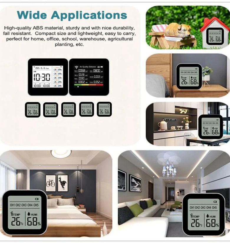 Versatile and Portable Design: Made from high-quality ABS material, the Tuya air quality tester is compact and lightweight, making it easy to carry and place anywhere. Whether you need it for your home, office, school, warehouse, or agricultural plantation, this tester is a perfect fit for diverse environments.
