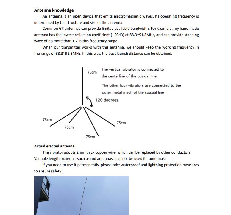 Antenna requirements: 50 ohm pure resistive load, VSWR not higher than 1.5