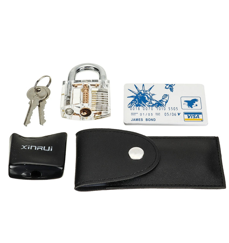 - The role of the rubber sleeve can practice blind opening. In addition, it is equipped with a portable card storage tool, which is very practical-With good technique, The Locksmith Tool can open most pin and tumbler locks as well as many keyed padlocks in seconds.-It can be an extremely valuable tool for professionals who have to open many similar locks regularly, but who don't have the time or interest in learning manual lock picking and manipulation.-And also, with the easy-to-use design, The Locksmith Tool is also suitable for beginners! Designed to be quickly inserted into a lock and with the rapid pull of the trigger, activate all of the pins at once.Features:-Tempered stainless steel picking fingers.-Easy application.Compact pocket knife design.-Strong lock opener has a very strong spring that can easily solve pin tumblers and disc suspensions.-It comes complete with picking blades,spanner and other accessories. Cracking locks of any shape, type and size will help.-The perfect set if you need something small, sturdy and versatile. Suit for everyday use as well as for the professional locksmith.-It masters your castle skills and brings you fun and knowledge. No experience required, fits for beginners and amateur.