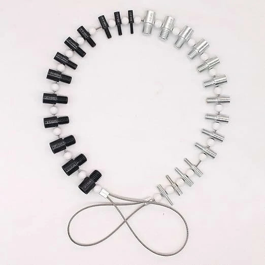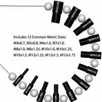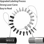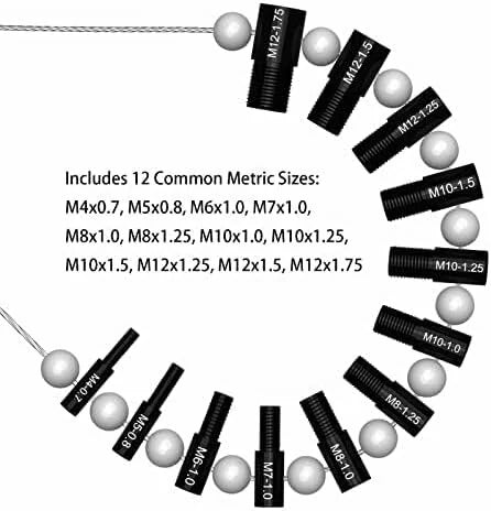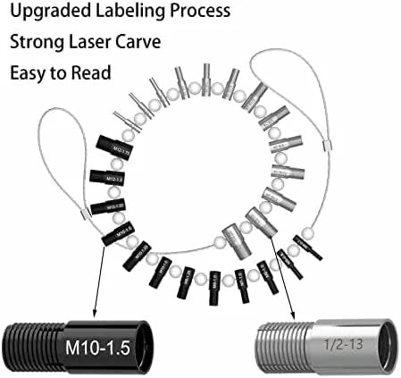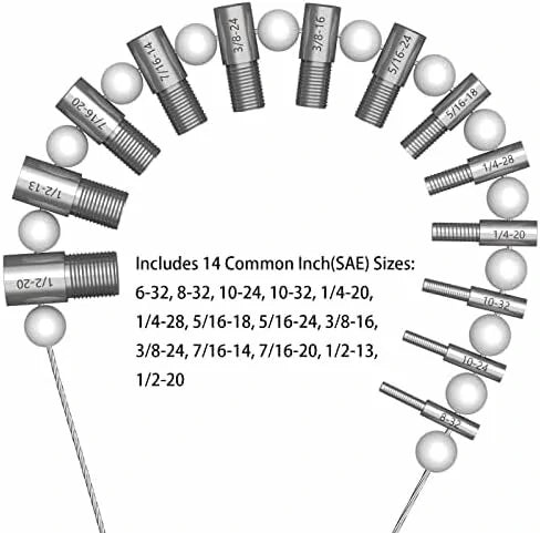 Nice Bundle: These thread gauges includes 26 male/female gauges - 14 inch & 12 metric. Each size has a nut and bolt checker on the same gauge. The individual gauges rotate freely on the wire cable for fast thread verification.Efficiency Improving: No more bent over the container looking for a nut/bolt to finish your project. Identifying the size and thread of nuts and bolts before making trips to the hardware store to match them, especially the nut or bolt that cannot be removed.Handy Tool Which You Should Have One: Excellent item for the mechanic; Applicable to mechanical repairs, or common threads in plumbing, air and gas connections, etc. Organize your garage and sort your nut & bolt with this nice tool, save your valuable time.Convenient hanging: The wire cable of this thread identifier with loop for hanging it on the wall in your workshop or garage beside your toolbox.Quality Process and Material: These nut & bolt thread checkers are made of strong stainless steel. Inch gauges are clear zinc plated, metric gauges are black oxide. Thread sizes are permanently carved on each gauge with distinct mark, which makes the mark easy for you to tell.Specifications:Nut and Bolt Thread Checker/ Thread Identifier GaugesFeatures:1. The best efficiency-improving tool to save your time and simplify your work.2. Especially well suited for identify the similar inch and metric threads.3. Nice gauges set includes 12 common inch sizes and 14 common metric sizes.4. All 26 gauges were strung on a wire cable; Never missing each single of them.Package includes:Inch (14 Sizes):6-32, 8-32, 10-24, 10-32, 1/4-20, 1/4-28, 5/16-18, 5/16-24, 3/8-16, 3/8-24, 7/16-14, 7/16-20, 1/2-13, 1/2-20Metric (12 Sizes):M4x0.7, M5x0.8, M6x1.0, M7x1.0, M8x1.0, M8x1.25, M10x1.0, M10x1.25, M10x1.5, M12x1.25, M12x1.5, M12x1.75