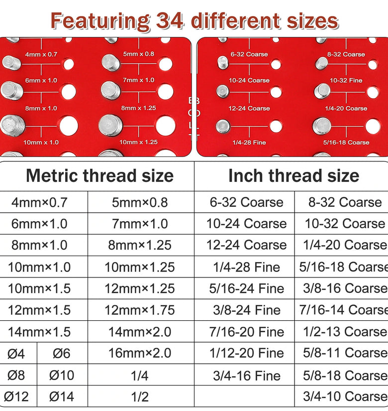 • 34 Nut and Bolt Thread Checker Bolt Size and Thread Identifier Gauge Standard and Metric Bolt and Nut Gauge with Inch and Centimeter Ruler for Accurate Measurement