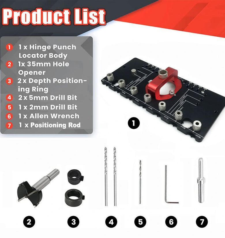 mso-bidi-font-family:'Times New Roman';font-size:10.5000pt;mso-font-kerning:1.0000pt;'>Comprehensive Kit: The kit includes a 35mm Hole Opener, Depth Positioning Rings, 5mm and 2mm Drill Bits that provide everything you need for a professional hinge installation.mso-bidi-font-family:'Times New Roman';font-size:10.5000pt;mso-font-kerning:1.0000pt;'>