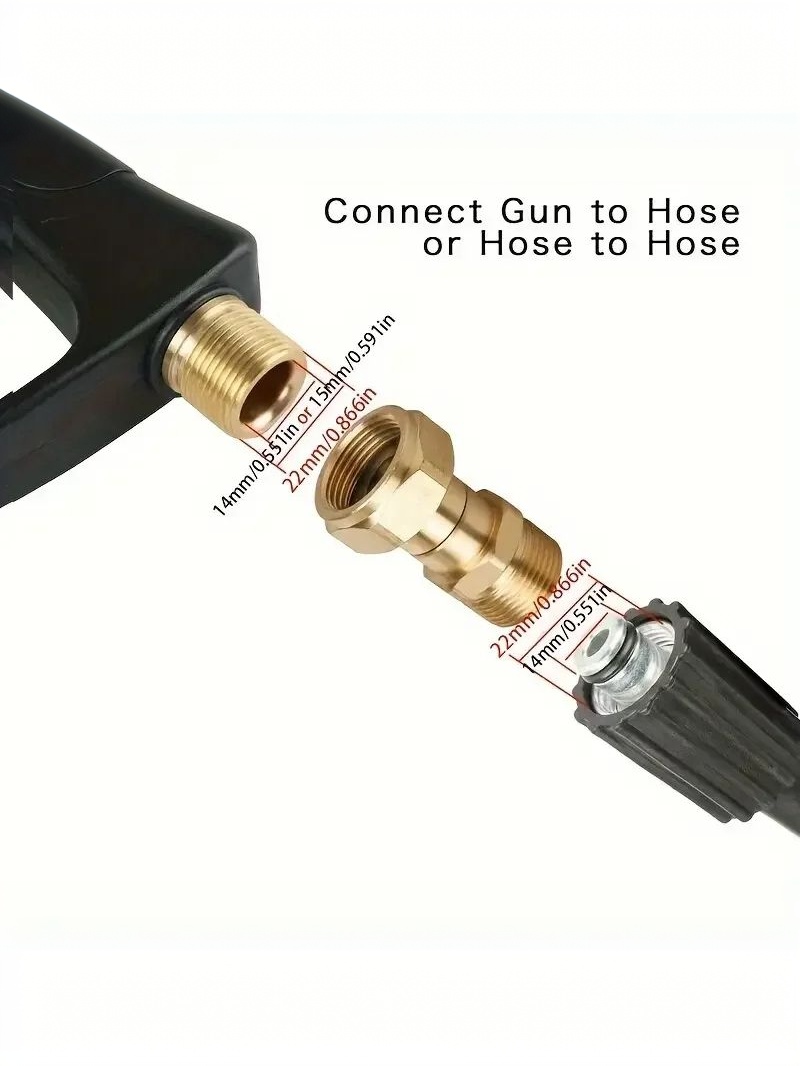 Features M22-14mm male-to-female threads, making it universally compatible with standard power washers and hoses.