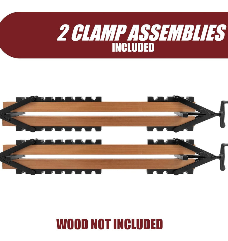 2.Adjustable Clamp Width: Capable of clamping boards with thicknesses up to 6 inches. Features plastic bars with 4 notches that allow you to customize the clamp width to fit various stock dimensions.