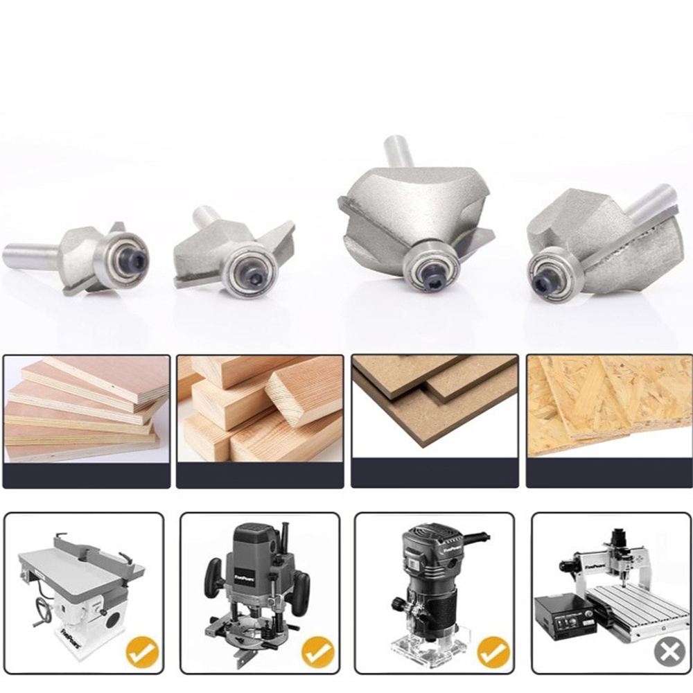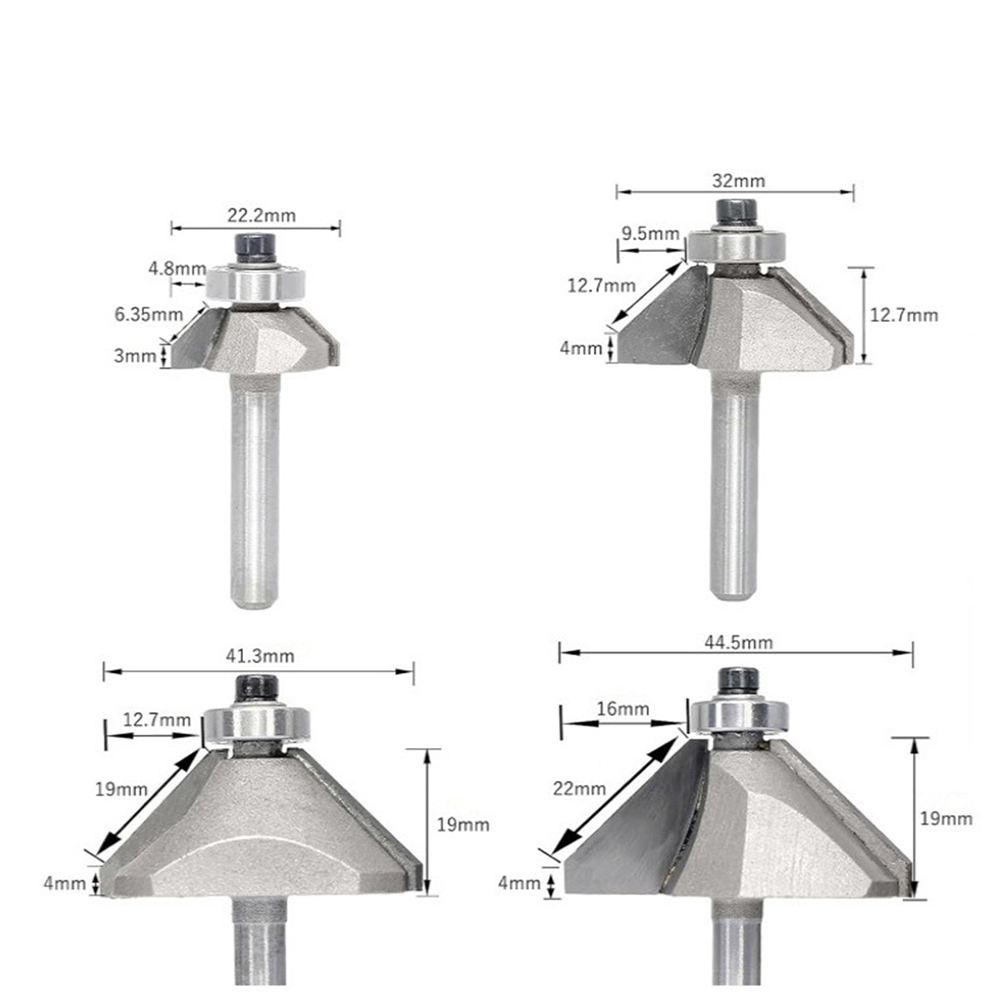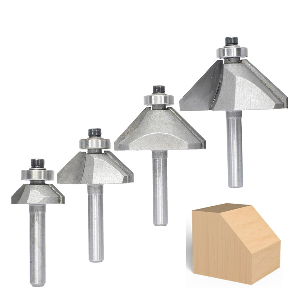 4PCS 45 Degree Chamfer Router Bit Set 1/4