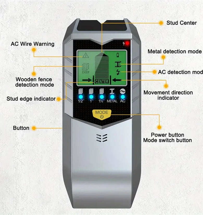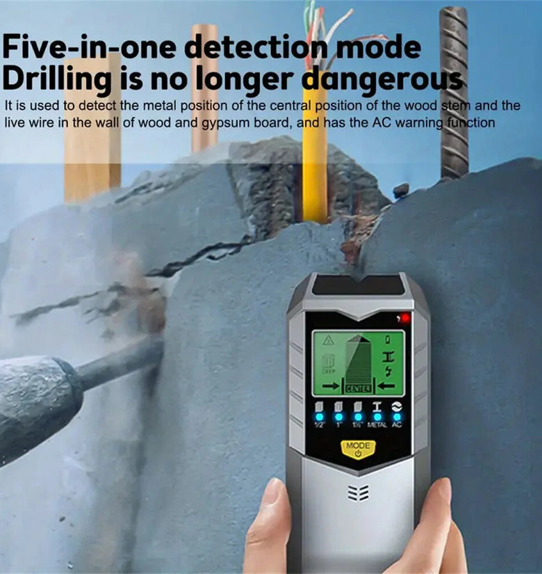 • 5-in-1 Electronic Wall Detector SH402 Multifunctional Handheld Metal Stud Wood Finder with Alarm System LED Display for Home Construction and Renovation Safety