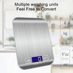 Multi-Unit Conversion: Effortlessly switch between grams, kilograms, pounds, ounces, milliliters, and fluid ounces. This versatile feature allows you to measure different ingredients with ease, providing convenience for various cooking and baking needs.