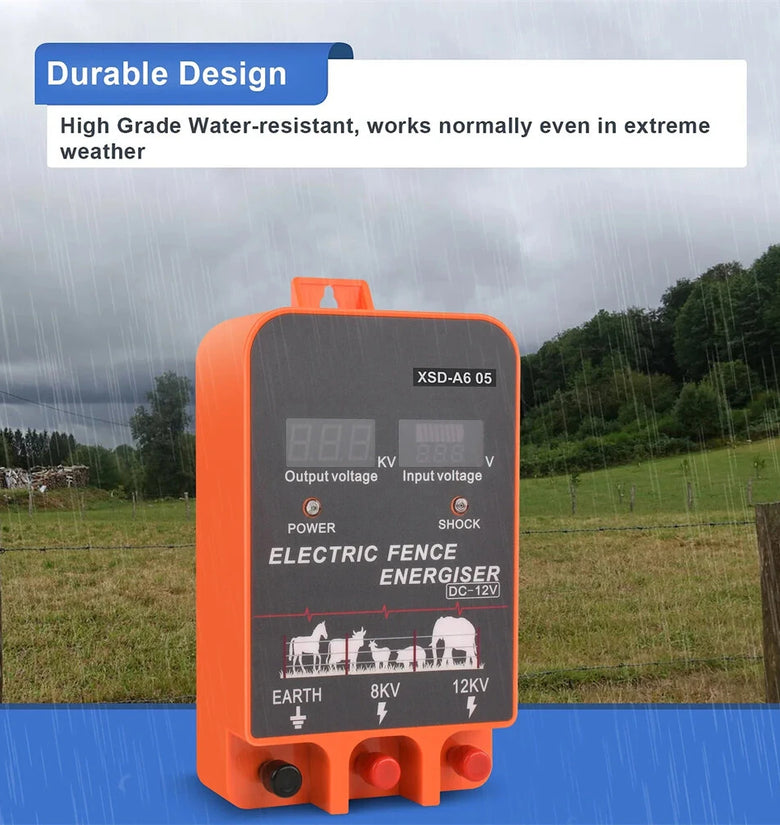 【 Waterproof】: Electric fence energizer designed to be waterproof, suitable for use in wet environments, makes it to be used normally even in extreme weather.