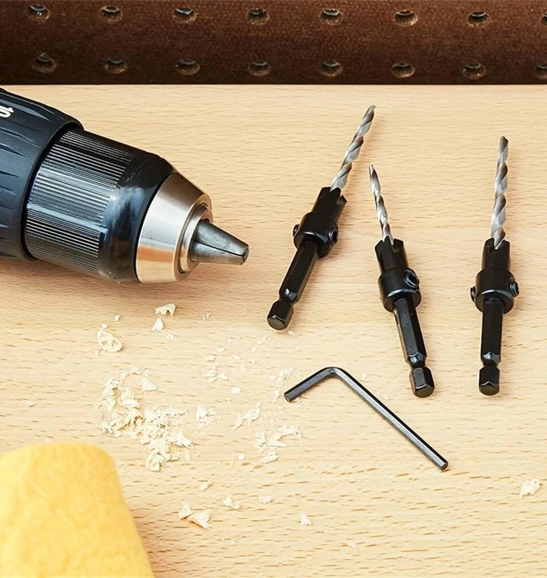 • 5PCS Countersink Set Countersink HSS Conical Countersink With 1 Hex Wrench Woodworking Countersink Bit