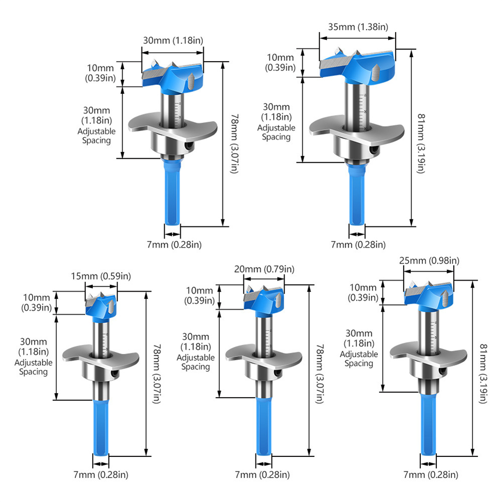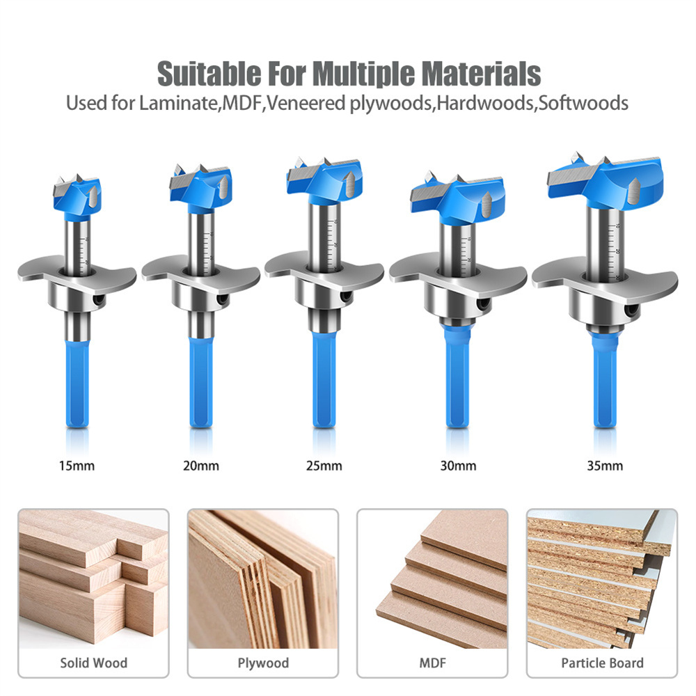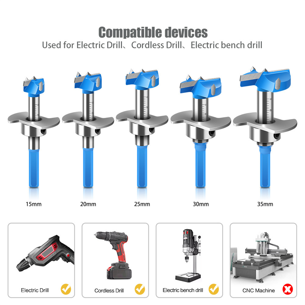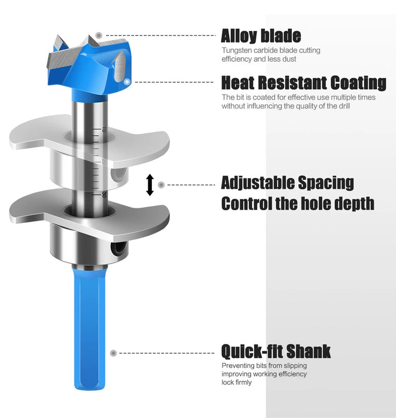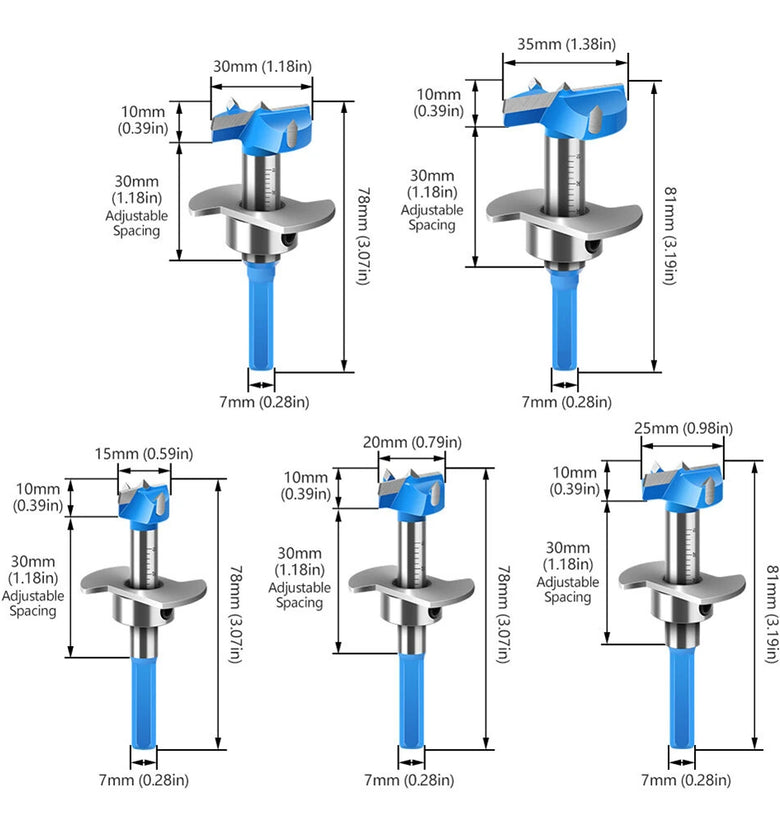 Adjustable Wing Drills: Comes with adjustable wing drills that provide flexibility and efficiency in creating a variety of hole sizes from 15mm to 35mm.
