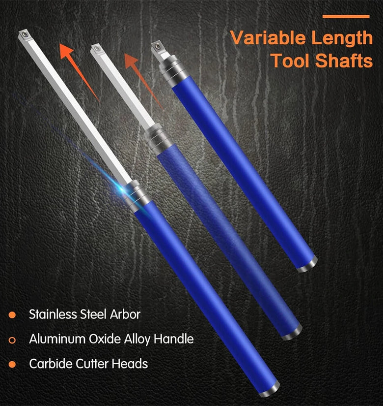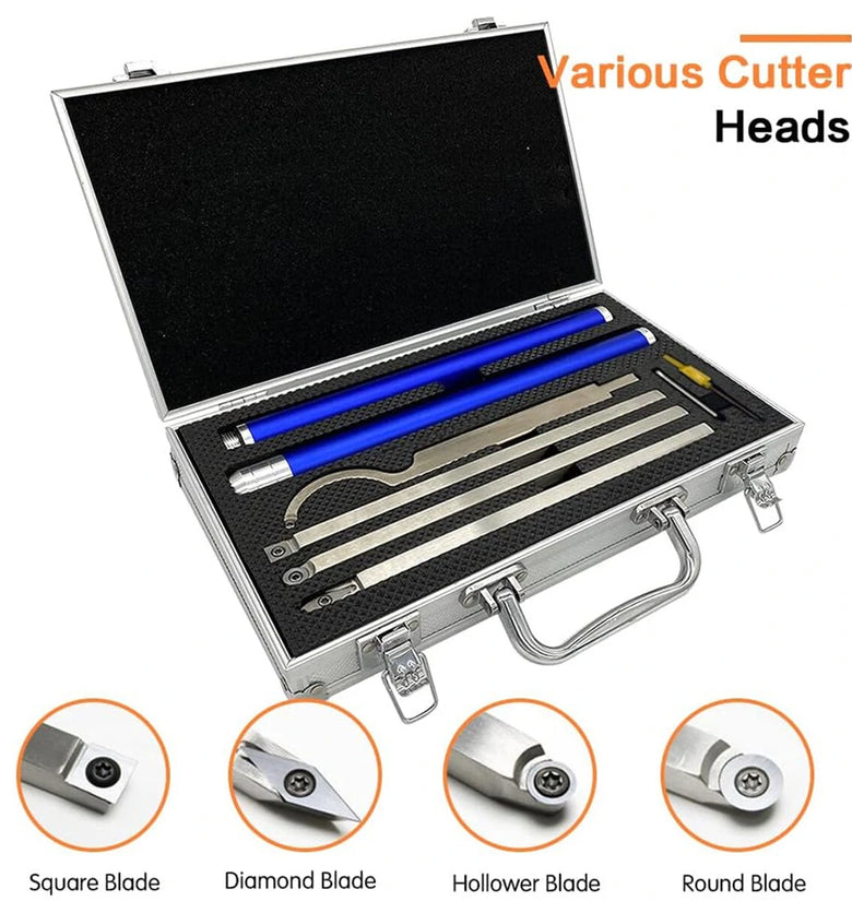 • 6 In 1 Carbide Tipped Wood Turning Tools Set Latest Lathe Rougher Finisher Swan Neck Hollowing Tools and Interchangeable Aluminum Alloy Grip Handle with Diamond Round Square Carbide Inserts