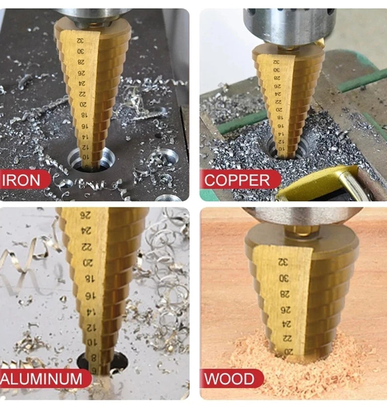 • 6Pcs Step Drill Bit Saw Drill Bit Set Titanium Milling Cutter 4-12 4-20 4-32mm 3 6 8mm For Woodworking Metal Core Hole Opener