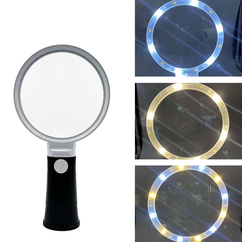 • 6X-10X Mini Pocket Magnifier Adjustable Handheld Reading Magnifier with Parent-Child Acrylic Lens Three-Mode Lighting Ideal for Outdoor Observation Reading Antique Appreciation and Circuitry Repair