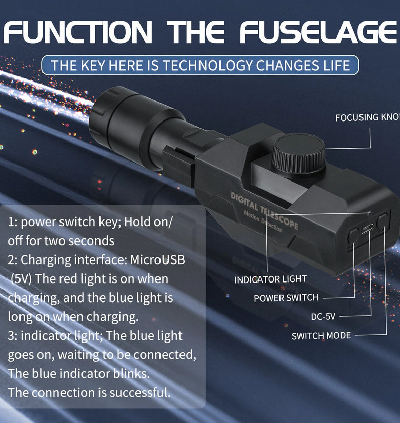 70X HD WIFI Digital Telescope with Metal Tripod 2MP Rechargeable Wireless Monocular Scope Support Android IOS for Taking Picture VideoSpecification
