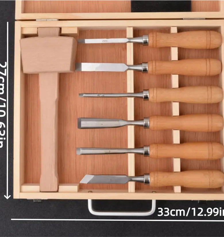 • 7PCS Premium Wood Turning Carving Chisels Set DIY Woodworking Sculpting Tools Includes Flat Curved Skew Chisels and Wooden Hammer