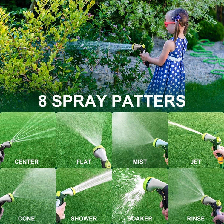 This water gun offers eight spray patterns, ranging from high-pressure jet to soft mist, enabling precise cleaning for cars, gardens, and delicate plants without hassle.