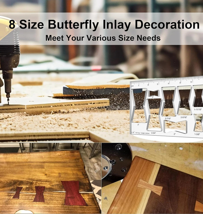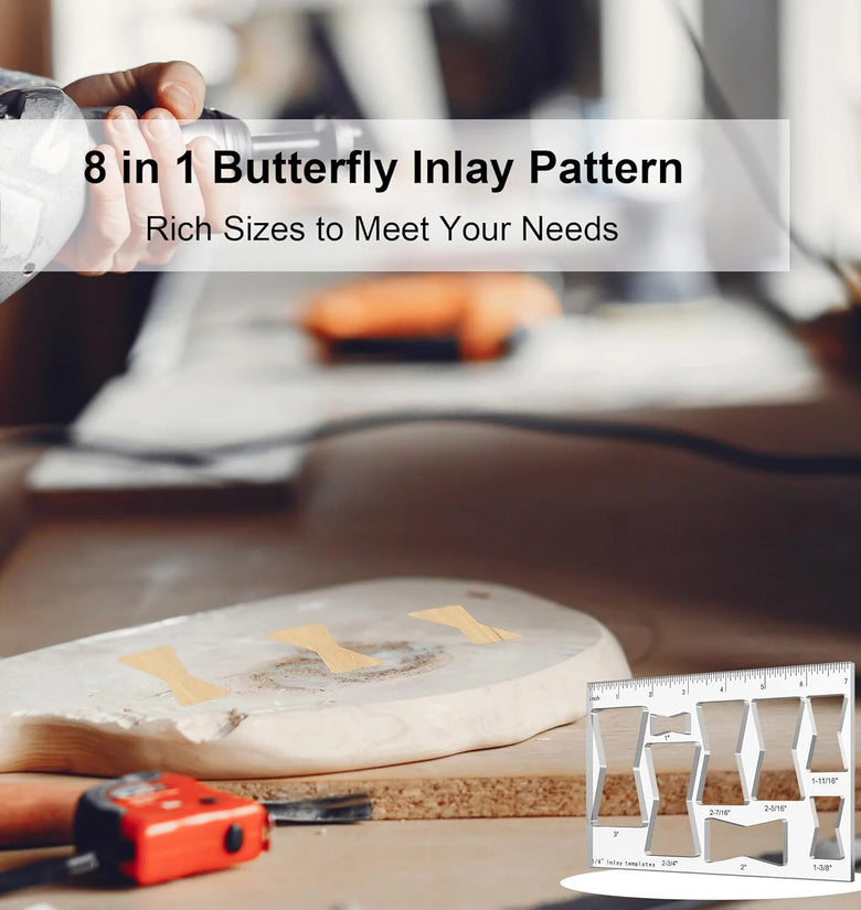 • 8 In 1 Router Template Jig 7 Inch Router Inlay Template Bowtie Router Template Decorative 8 Sizes Router Jig Woodworking DIY Tool