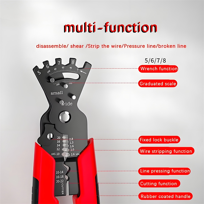 Designed to strip wires from 0.8 to 2.6mm² (AWG10-20) with ease, making your wiring tasks quicker and more efficient.